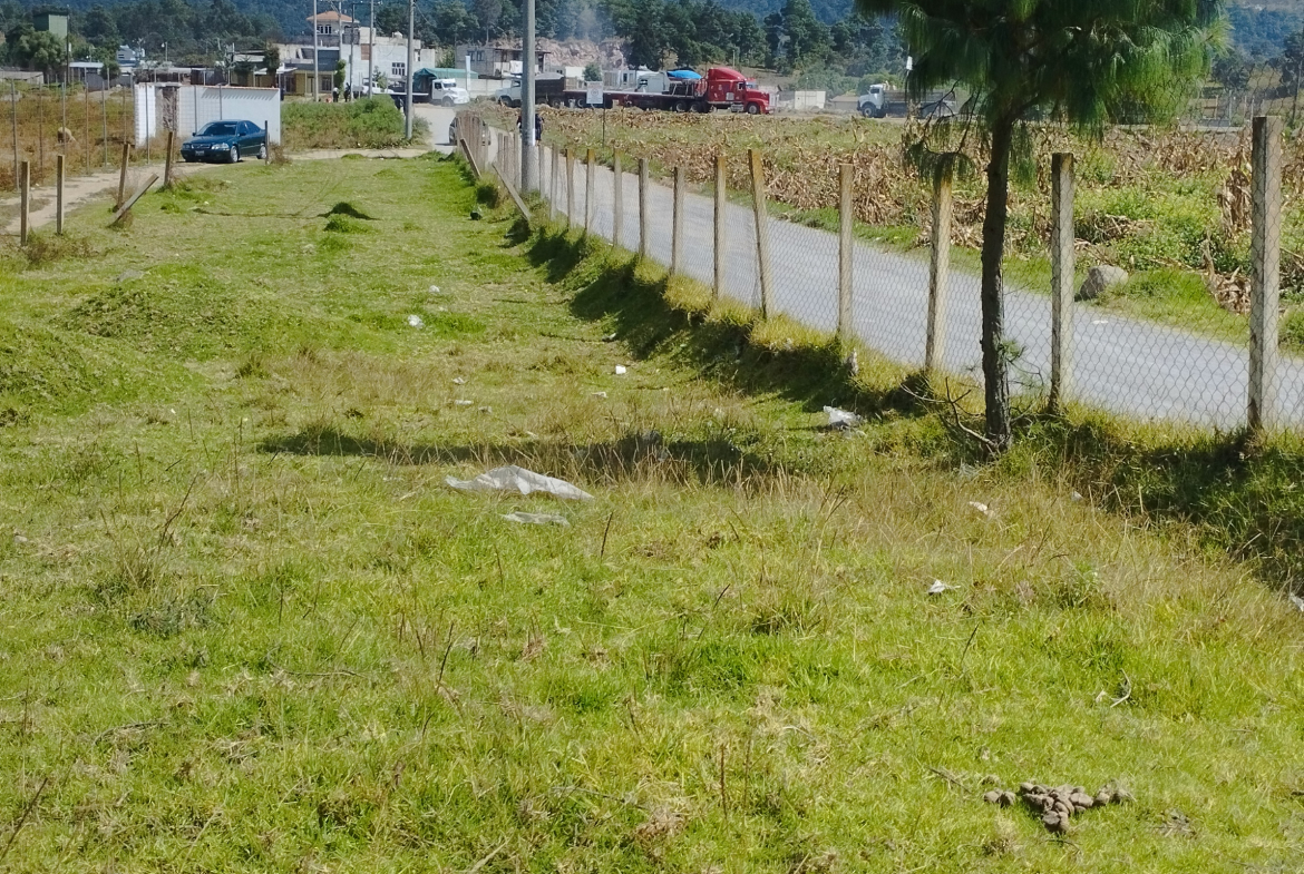 Media cuerda (200 metros) en Tierra Colorada Baja, Quetzaltenango. Terreno plano, agua y luz pasa al frente, a 100 metros de la carretera principal, Cerca de la entrada del Centro de Capacitación el Refugio. Excelente acceso.